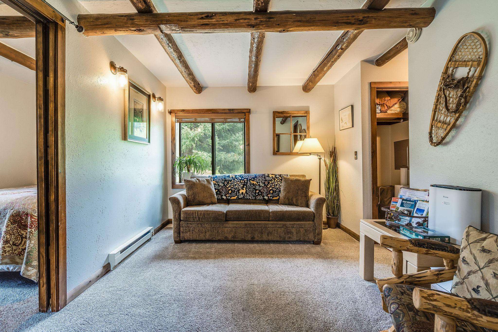 This rustically charming log cabin with one bedroom and a loft was built by homesteader, Mickey Wagner, for his trapping friend, a French-Canadian named Baptiste. This cozy cabin is surrounded by meadows with gorgeous views of Bad Rock Canyon.