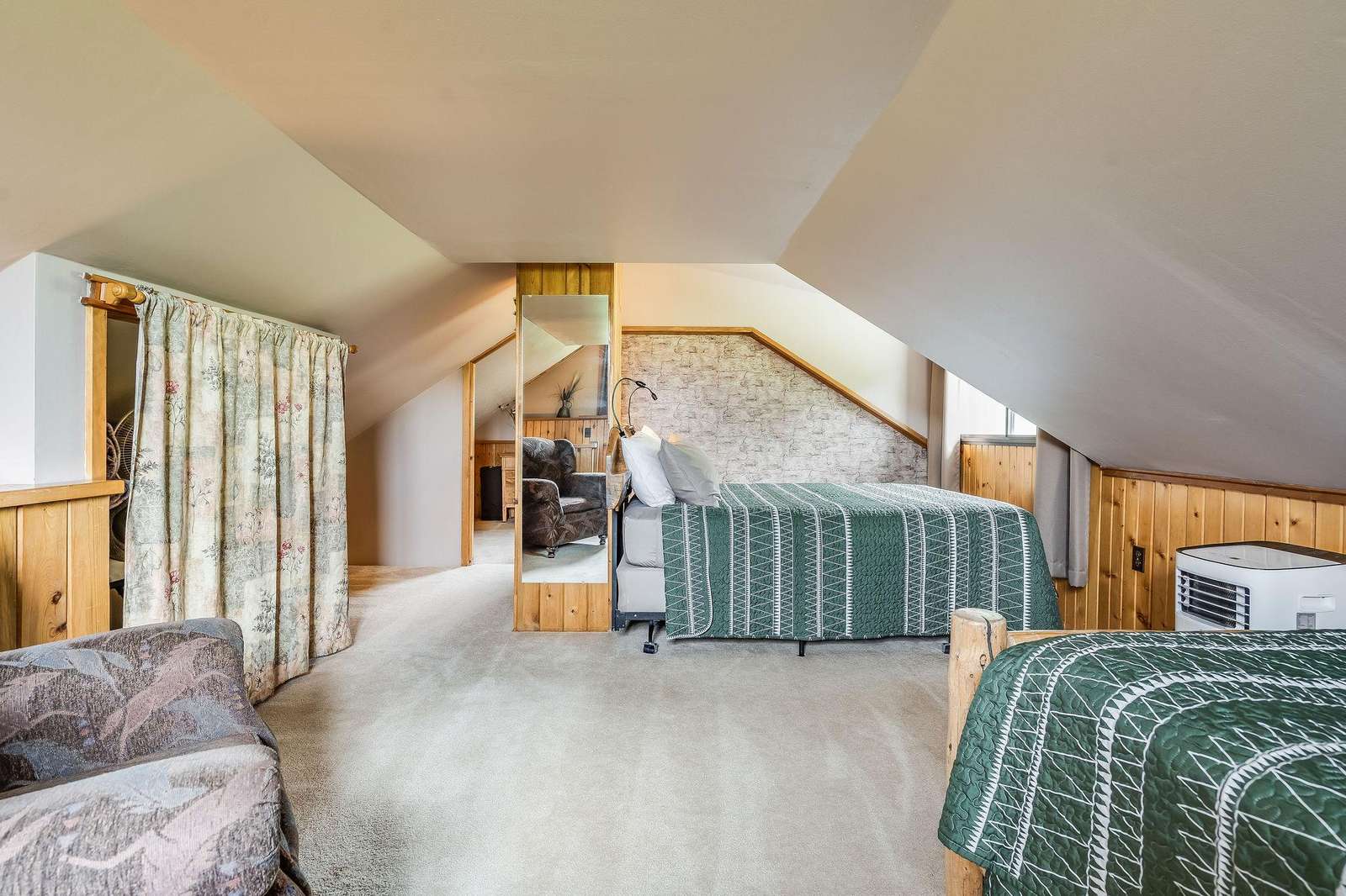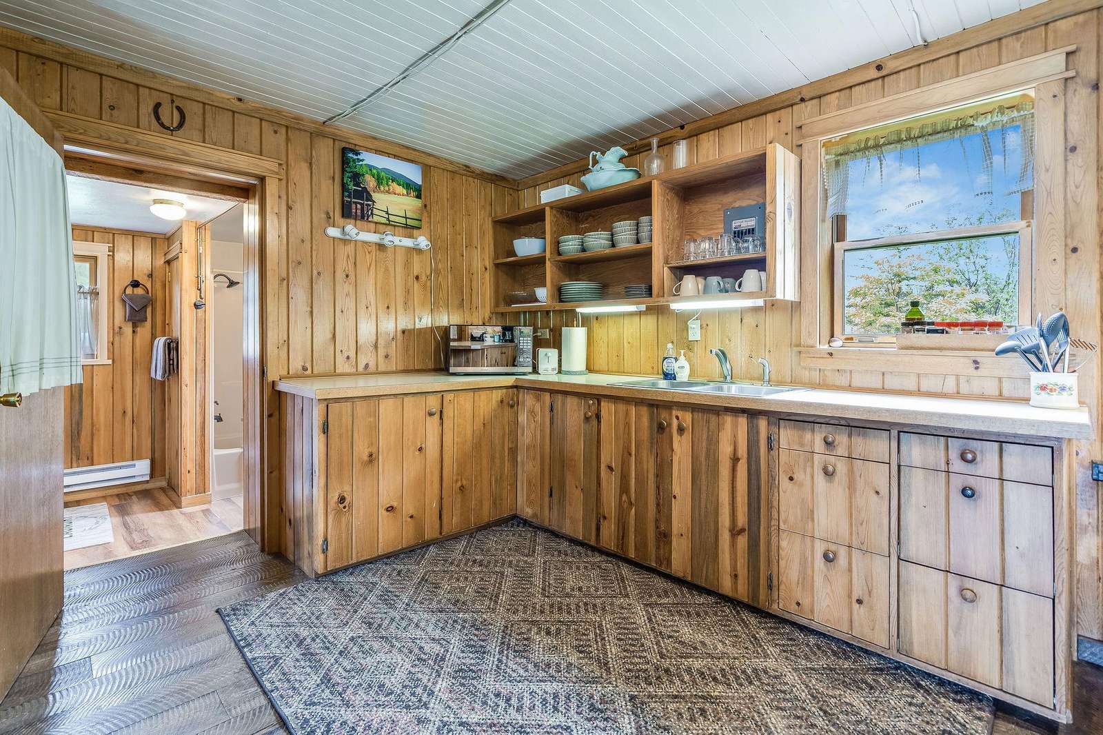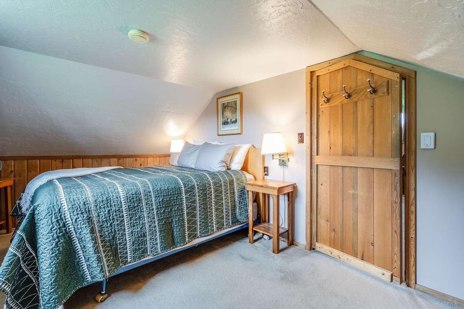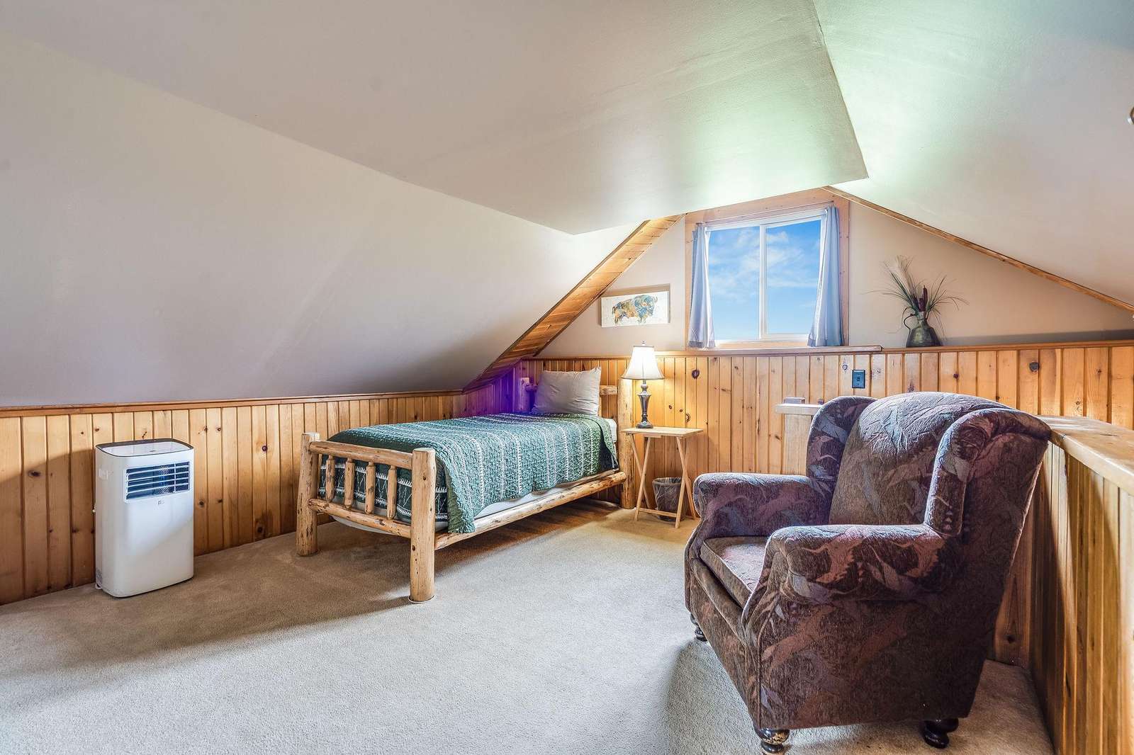 Adjacent to Mickey's is the Bunkhouse. This small cabin was used as a pelting shed by Mickey and other trappers. It has been converted into a bunkhouse which can be rented in conjunction with Mickey's. With four single log post beds and located next to the main house, this is a perfect place for the kids or extra guests. This cabin is reserved for guests of Mickey's.