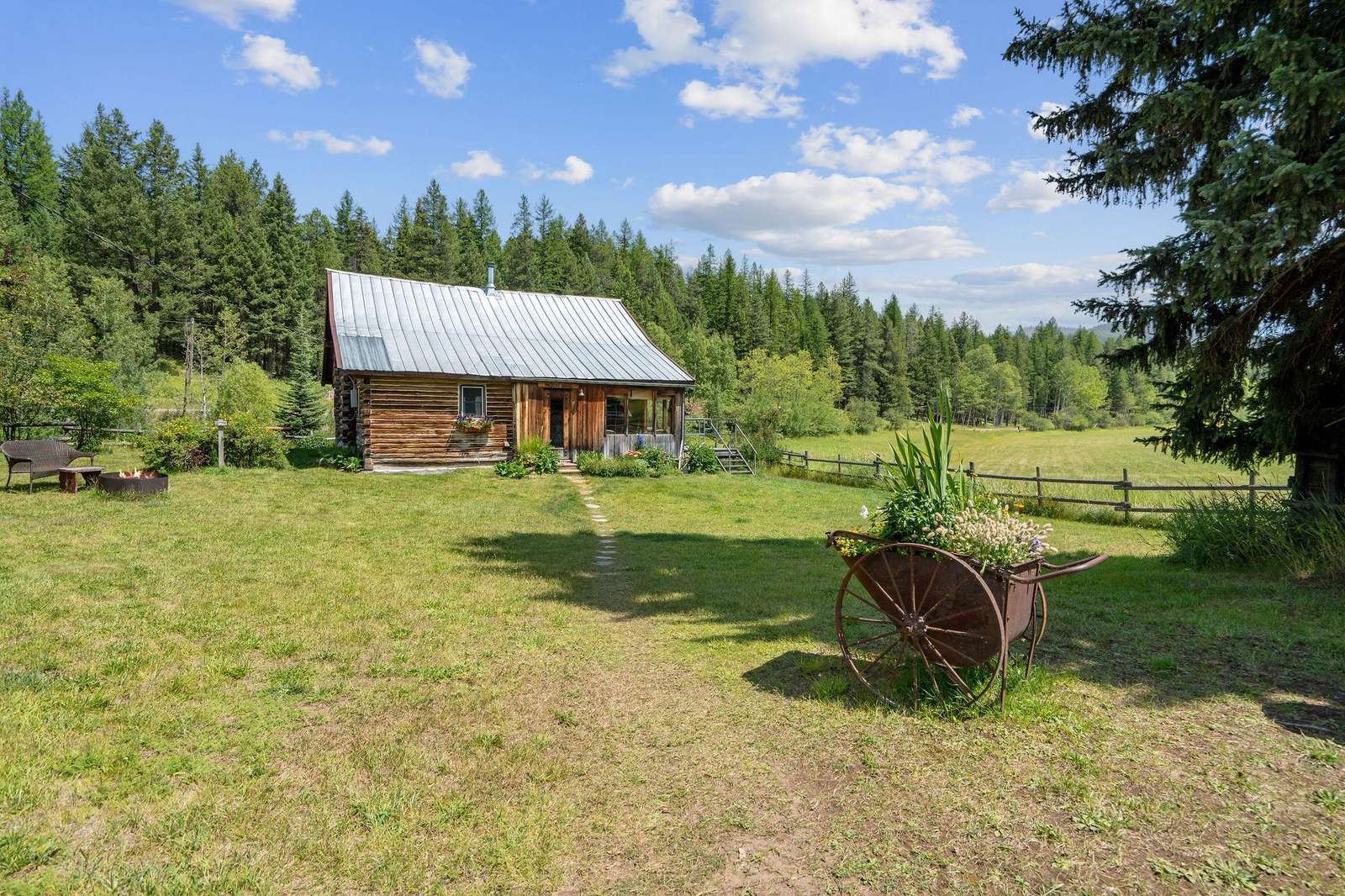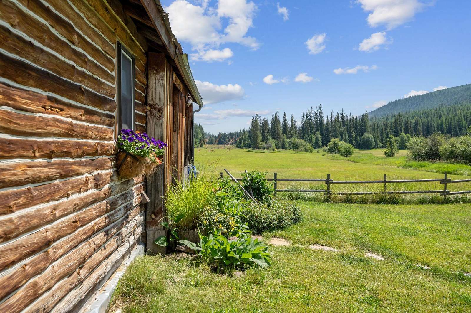 Mickey's, an original homestead cabin located on pristine Abbott Valley, is surrounded by natural beauty and panoramic views with acres of meadows, creeks, beaver ponds, and forests.