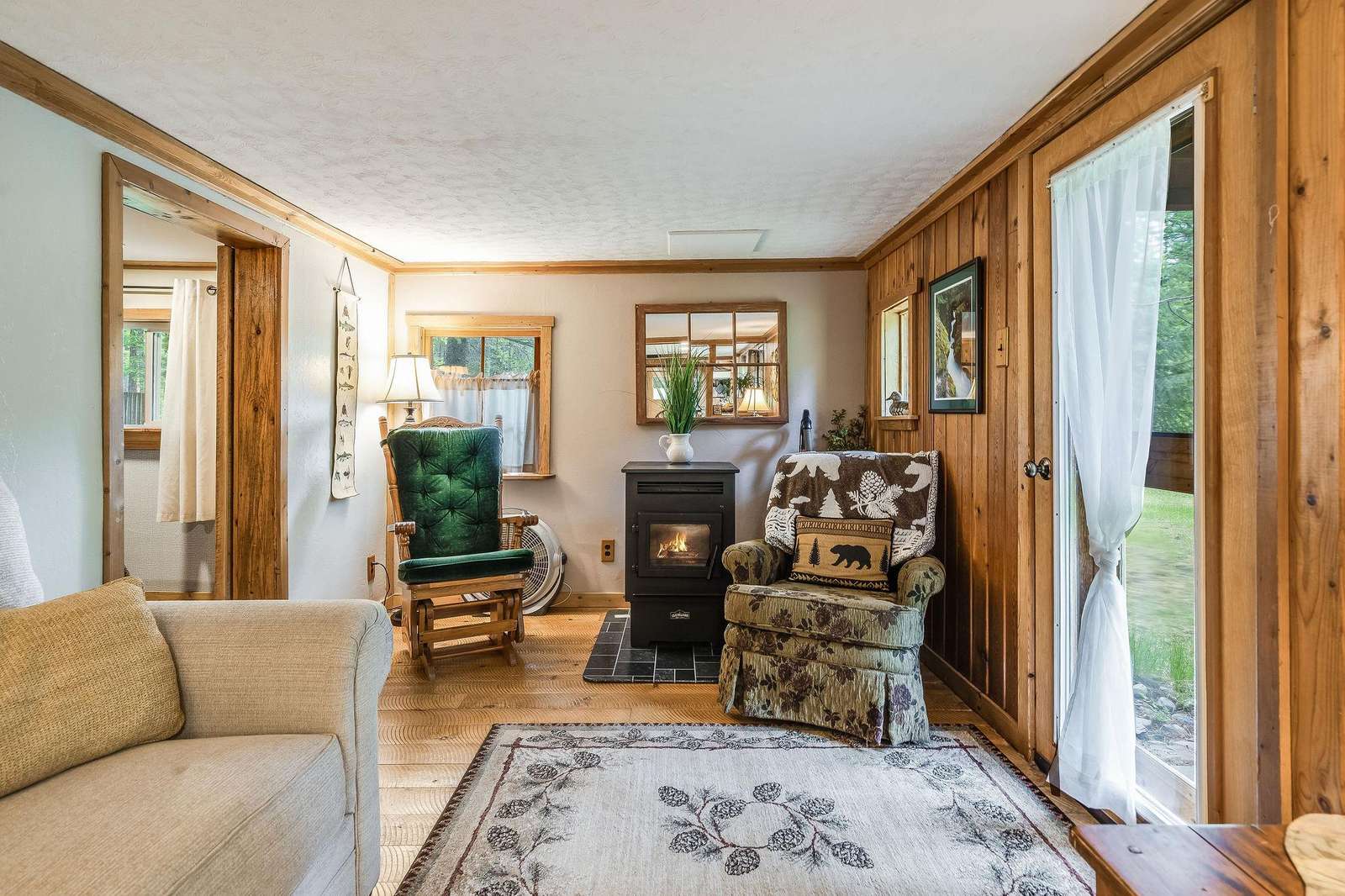Quintonken has a bright, sunny breakfast room, cozy living room with a gas fireplace, covered porch, swing-set, large yard and special private deck on Abbott creek. Watch for brookies (small trout)! Or keep an eye out for warblers, dippers, American redstarts, scarlet tanagers, finch, nuthatches and their allies!