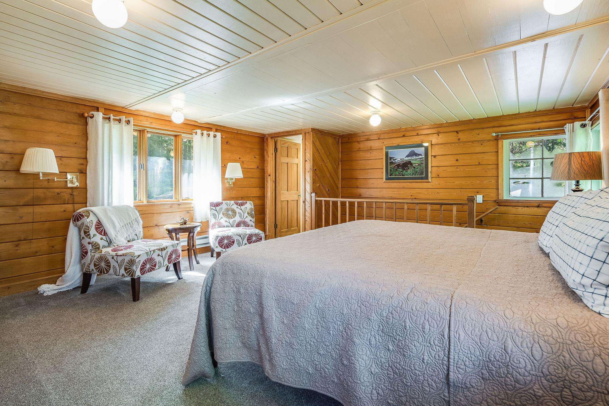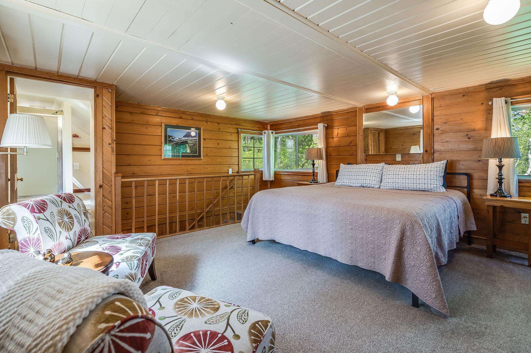 This three bedroom, two bath house has a large kitchen, living room with knotty pine interior, bath and laundry on the main floor. Also on the main floor are two smaller bedrooms with queen size beds. Upstairs consists of a spacious master bedroom with a king size bed and a private bath.